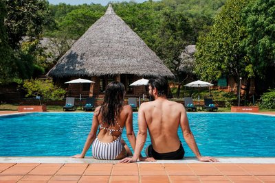 Die Atmosphäre des SwaSwara überrascht: eine Oase der Stille in tropischer Umgebung, erbaut aus Naturmaterialien und wunderschön in die Landschaft eingebettet. Das Resort ist ganzjährig buchbar, während des Monsuns von Mai bis Juli kann es sehr warm werden und stark regnen".