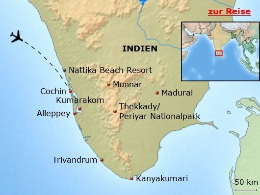 In etwa zwanzig Kilometern Entfernung liegen die Tempelstädte Trichur und Kodungalur mit ihren historischen Heiligtümern. Während der Tempelfest-Saison finden dort farbenfrohe Prozessionen mit traditioneller Musik und Feuerwerken statt. Am Strand des Resorts lässt sich das ursprüngliche Leben der Fischer beobachten. Als Verlängerung bietet sich die historische Kolonialaltstadt von Cochin an, die mit ihrer Mischung aus portugiesischer, niederländischer und britischer Architektur einen stimmungsvollen Abschluss der Reise ermöglicht.
