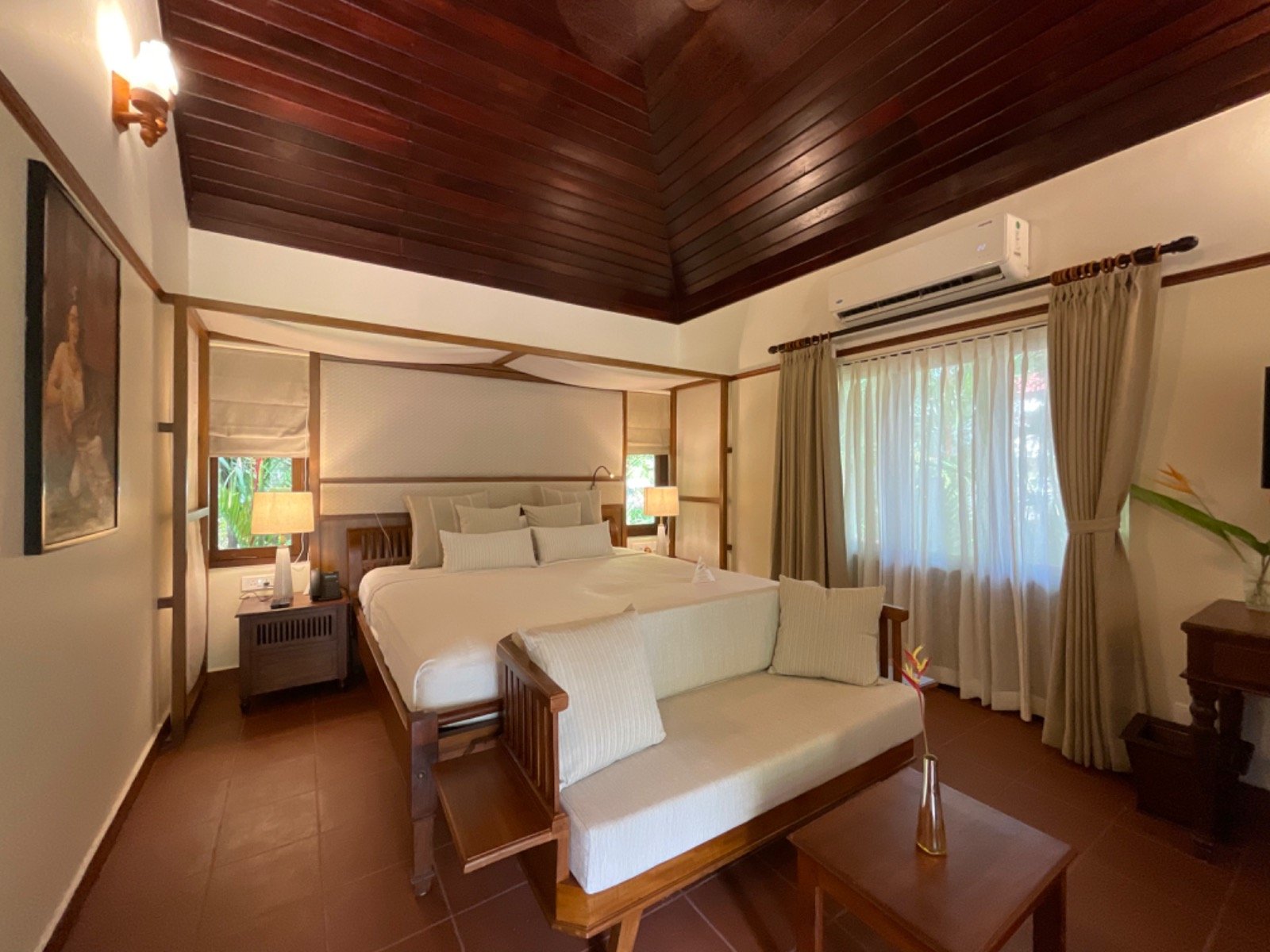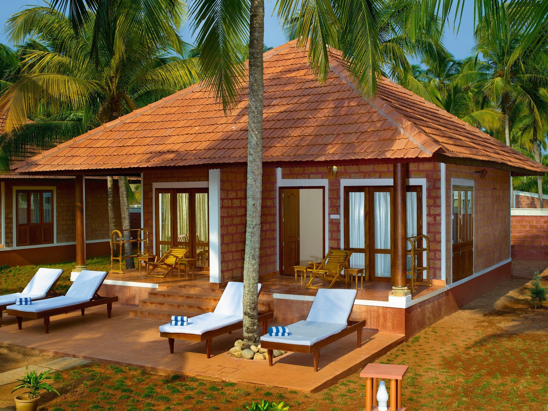 Die vier Superior Deluxe Villen sind die großzügigsten Zimmer des Nattika Beach. Sie sind im typischen keralesischen Baustil gefertigt. Das offene Bad gibt den Blick auf die Palmwipfel frei. Es gibt einen eigenen Ankleidebereich. Alle vier Superior Deluxe Villen sind mit Klimaanlage, TV, Kühlschrank und Telefon eingerichtet. Von Ihrer eigenen weitläufigen Veranda genießen Sie den Blick in den tropischen Palmengarten. Buchbar auch zur Alleinnutzung (siehe Einzelzimmer-Aufpreis in der Preisliste).