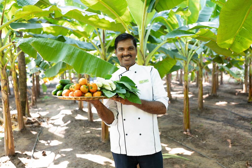 Die keralesische Küche im Nattika Beach Resort ist vegetarisch ausgerichtet und wird ergänzt durch Meeresfrüchte. Obst und Gemüse stammen zum Teil aus dem hauseigenen biologischen Garten. Ihr Speiseplan wird individuell mit dem behandelnden Arzt abgestimmt und an Ihre Kur angepasst. Traditionelle Gerichte wie Masala Dosa – hauchdünne Reismehl-Crêpes mit Kartoffel-Gemüsefüllung und frischen Chutneys – verbinden Genuss mit leichter Bekömmlichkeit. Die Mahlzeiten werden gemeinsam in der Gruppe eingenommen und schaffen Raum für Austausch und Verbindung.