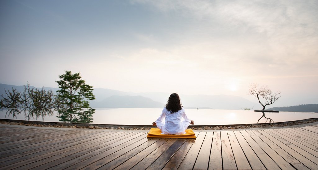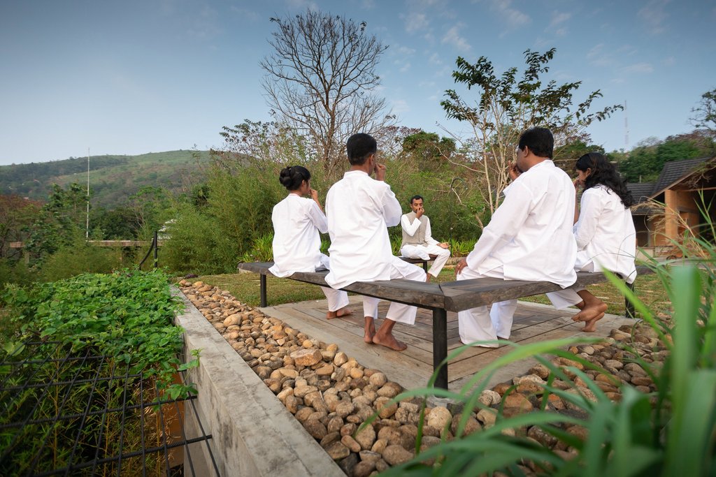 Yoga und Meditation sind fester Bestandteil des täglichen Programms – sowohl in der Gruppe als auch als Einzelbegleitung. Die Einheiten finden bei Sonnenauf- und -untergang statt, wahlweise im Amphitheater unter freiem Himmel oder im großzügigen Yoga-Raum. Ergänzend umfasst das Behandlungsprogramm wohltuende Massagen, Kälte- und Wärmeanwendungen sowie Akupressur. Zwischen den Anwendungen laden der Infinity-Pool und die Pool-Bar mit frischen Mocktails und Tees zur Entspannung ein.
