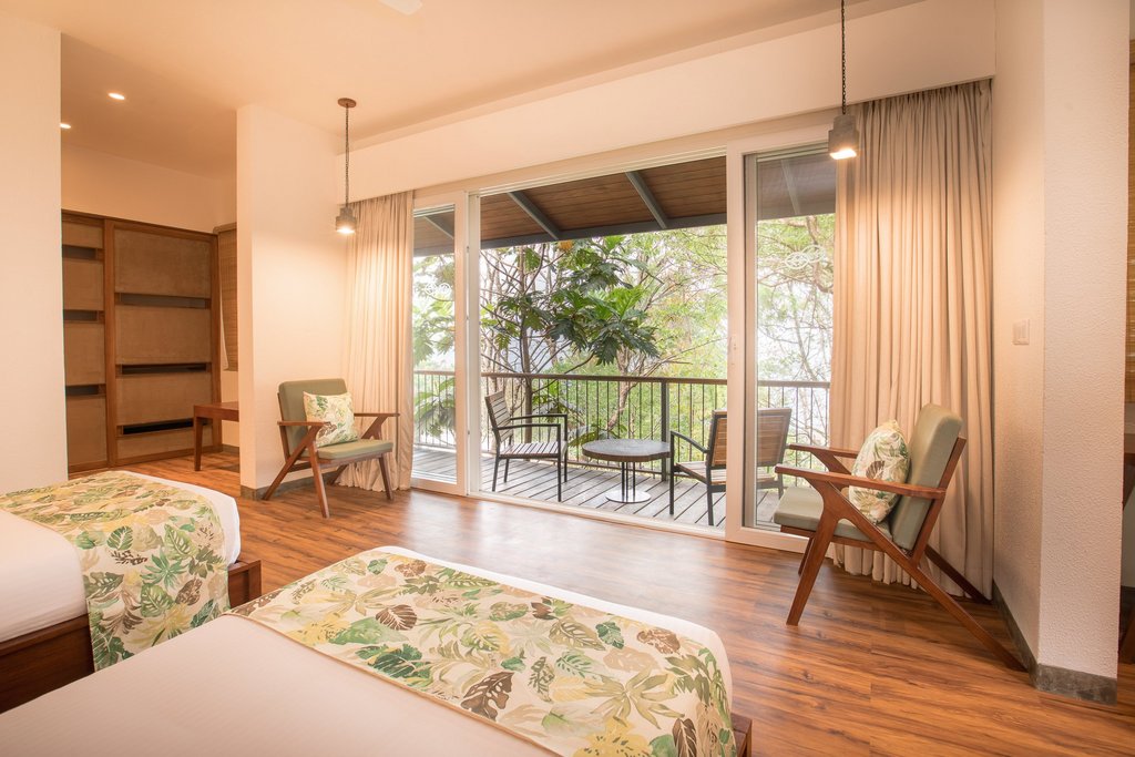 Das Prakriti Shakti liegt in der üppig grünen Bergwelt Keralas, oberhalb von Cochin. Die Höhenlage sorgt für angenehm kühle Temperaturen und klare Luft. Fernab städtischer Betriebsamkeit bietet die Umgebung Stille und Weite. Die 19 Zimmer des Hauses fügen sich in die Landschaft ein – jedes mit Balkon und Blick auf die umliegenden Berge. Die großzügigen Bäder bieten optional eine Außendusche. Am Infinity-Pool oder in der Lounge-Area lässt sich die freie Zeit zwischen den Behandlungen verbringen.