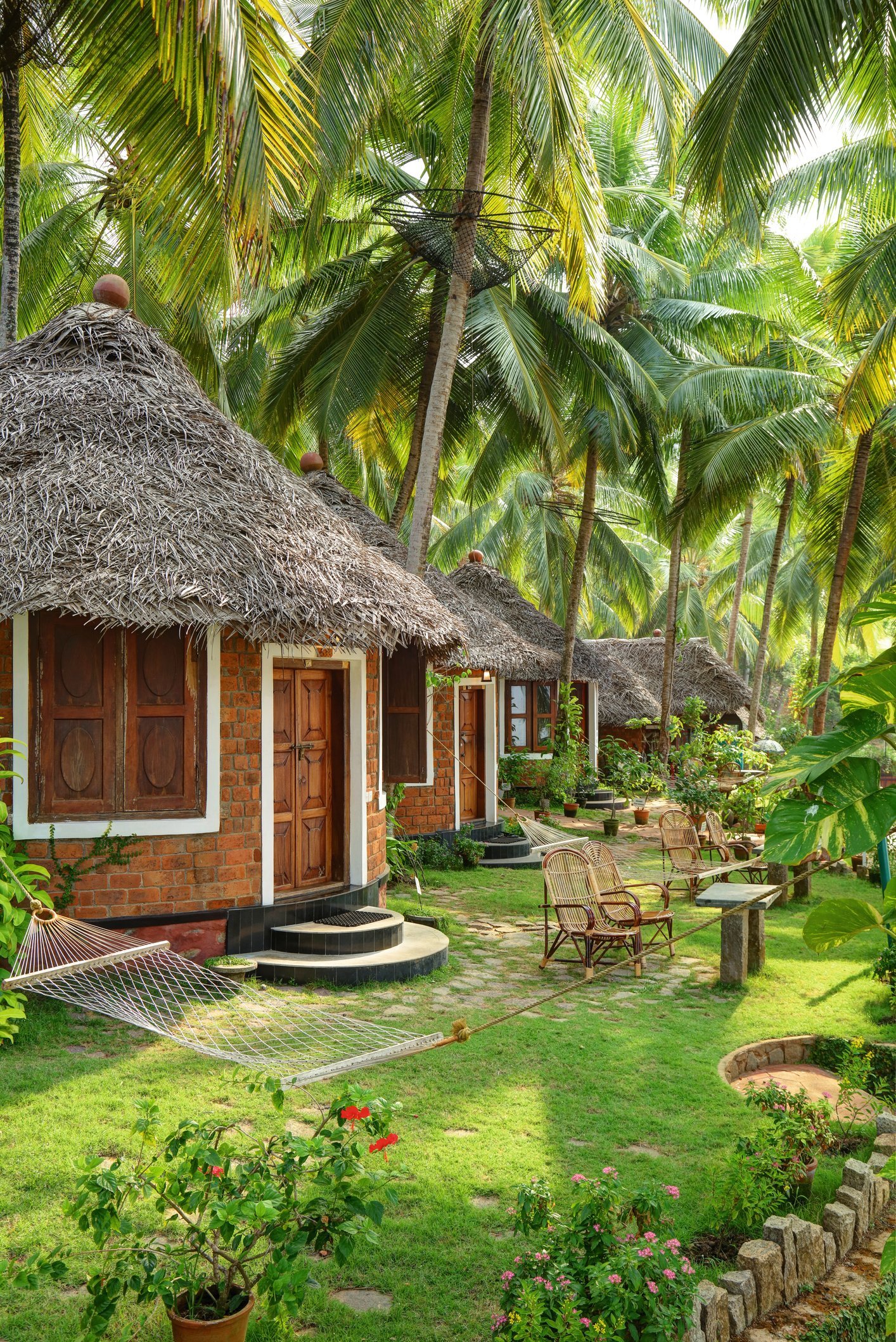 Hoch über den Klippen, mit direktem Blick auf den Arabischen Ozean, liegt das Resort in einer der schönsten Buchten Keralas. Die traditionellen Cottages und Kerala-Häuser aus natürlichen Materialien fügen sich in tropische Gärten ein. Von Ihrer Terrasse schauen Sie entweder ins Grüne oder direkt aufs Meer, wo sich abends spektakuläre Sonnenuntergänge entfalten. Die bewusst ruhige Lage fernab von Durchgangsstraßen schafft ideale Bedingungen für tiefe Entspannung. Der direkte Strandzugang ermöglicht morgendliche Yoga-Praxis am Meer – mit dem Rauschen der Wellen als natürlicher Begleitung.