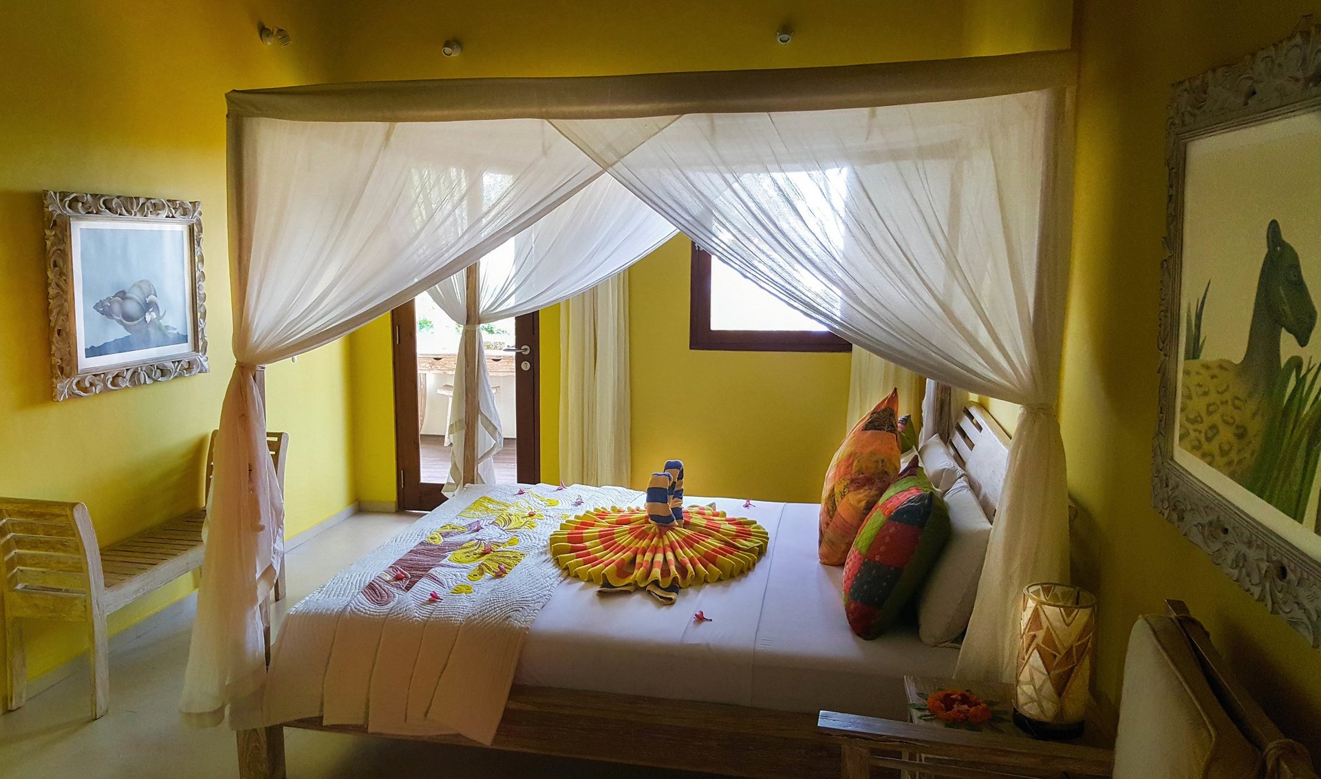 Die 18 zweigeschossigen Villen und sieben kleineren Bungalows wurden nach Feng Shui-Aspekten errichtet, welche die Harmonie und Bedürfnisse der Gäste zur Regeneration und Entspannung fördern. Jedes Zimmer ist individuell in Farbe und Material, mit viel Liebe zum Detail gestaltet. Es wurden ökologisch verträgliche Materialien wie Holz, Bambus oder Naturstein eingesetzt. Von Ihrer Terrasse aus können Sie den Blick auf das Meer oder den grünen Garten genießen. Als Frühaufsteher erleben Sie unvergessliche Sonnenaufgänge und können mit Glück auch vorbeischwimmende Delfine beobachten. Direkt vom Garten aus haben Sie Zugang zum Meer und können schwimmen und schnorcheln.