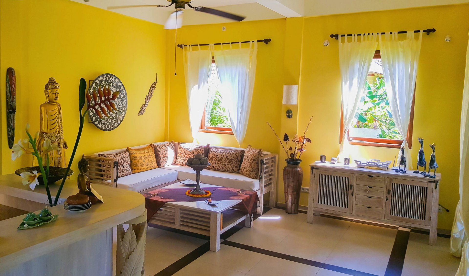 Das Holiway Garden Resort im ruhigen Norden Balis ist ein Ort zum glücklich sein. Grüne Bergketten liegen hinter Ihnen und der weite Ozean vor Ihnen. Die Sonne geht auf und taucht alles in ein mystisches Licht. Das Meer rauscht sanft, der leichte Wind weht durch die Blätter der hohen Kokospalmen, Mango- und Cashewbäume. Sie lächeln, denn Sie sind an einem ganz besonderen Ort angekommen. Das „Holiway Garden“ verdankt seinen Namen dem „Heiligen Weg“, der durch die Anlage führt und über den einmal jährlich eine balinesische Prozession zieht. Außerdem steht „Holiway“ für „Holistic Way of Life“, dem Leben in Ganzheitlichkeit. Hier haben Sie Zeit, um Körper, Geist und Seele in Ihrem Bali Urlaub in Balance zu bringen.