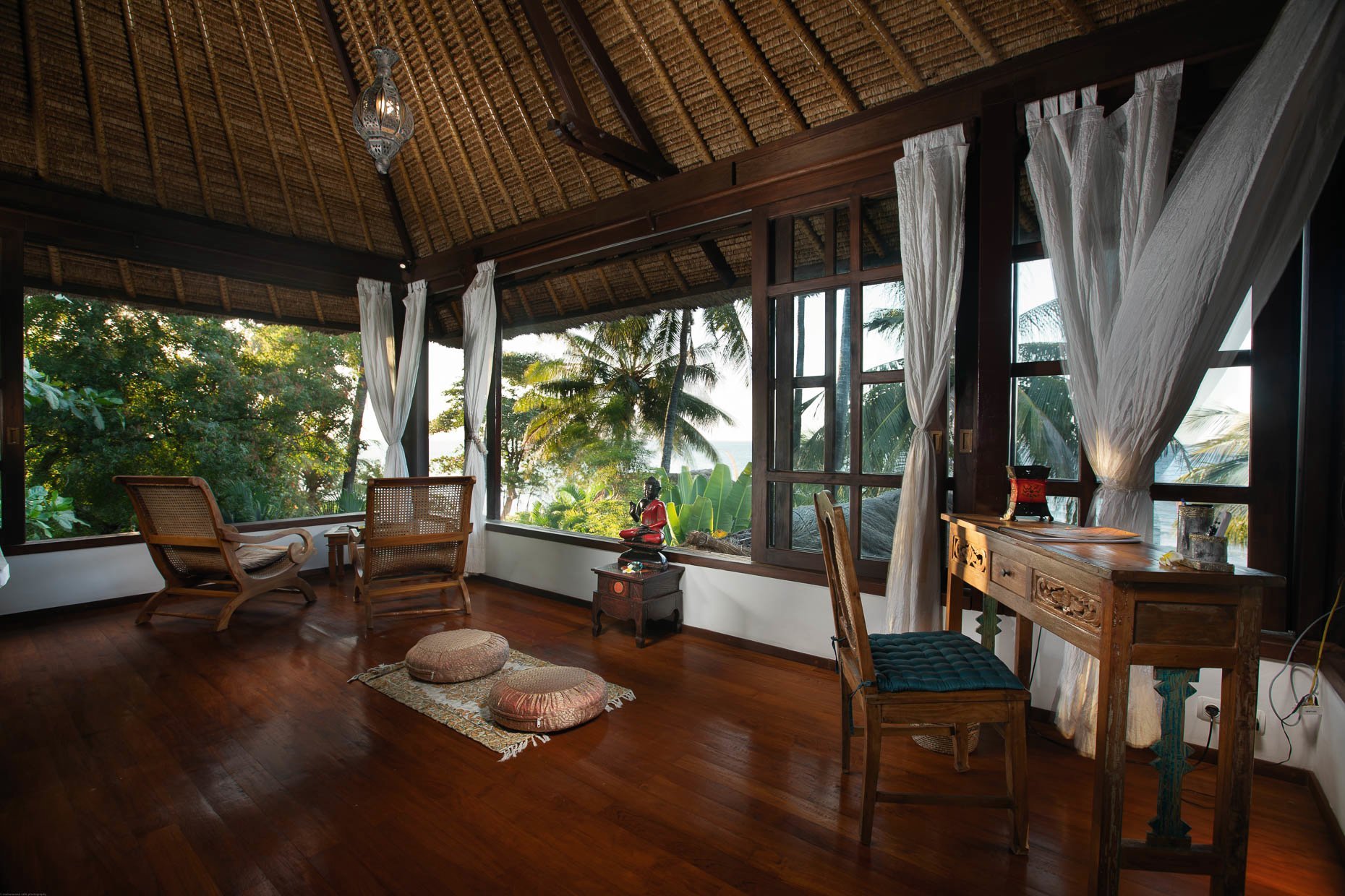 Das Sunrise und das Sunset Zimmer befinden sich im 1.Stock neben dem Yogaraum. Die Zimmer sind 30-35 qm groß und bieten einen herrlichen Blick über das Meer.