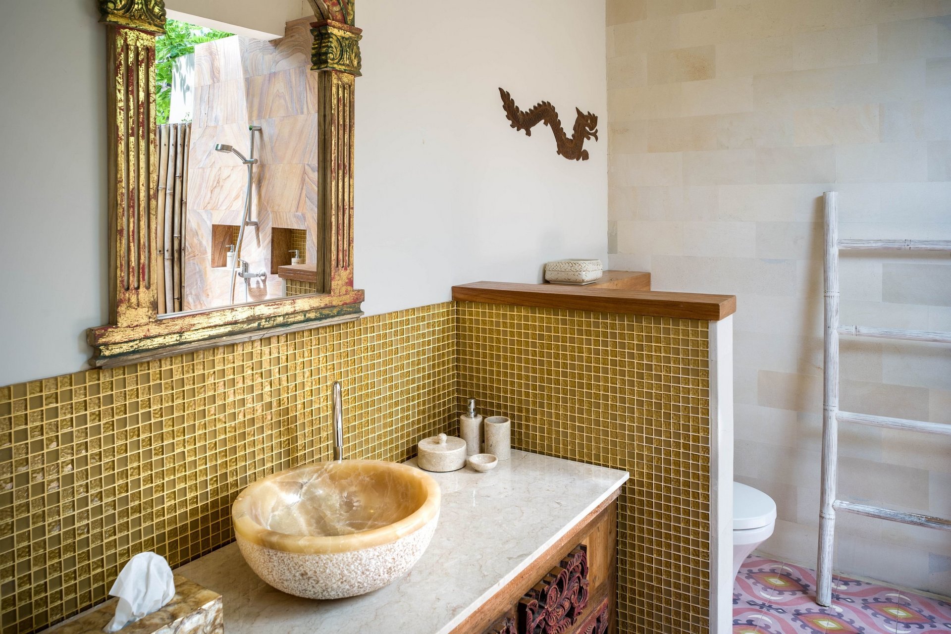 Jedes der 10 Zimmer erzählt eine andere Geschichte mit individuellem Design, welches die Leidenschaft und die Liebe zum Detail wiederspiegelt. Gebaut im Stil traditioneller javanischer Holzhäuser, wurde eine einzigartige Mischung aus antikem, wiederverwendetem Teakholz und Natursteinen verwendet.