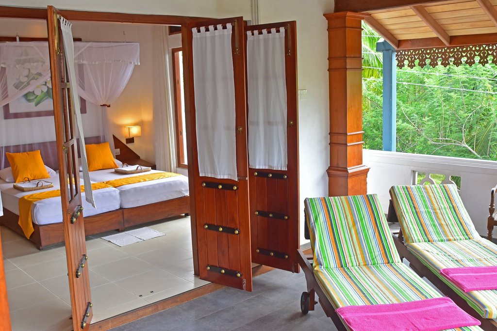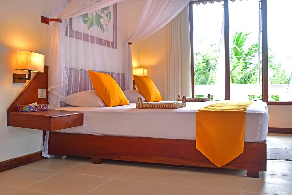 Die beiden Zimmer der Safira Beach Residence befinden sich direkt am Strand in unmittelbarer Nähe zum privaten Gartengrundstück. Über eine Treppe im tropischen Garten gelangen Sie zu den beiden Zimmern der Safira Beach Residence, welche sich im ersten Stock befinden. Vom Balkon aus haben Sie einen traumhaften Blick über den weitläufigen mit Palmen gesäumten Strand und den Indischen Ozean. Die Zimmer sind freundlich und zweckmäßig eingerichtet und haben ein eigenes Bad und WC. Ein Deckenventilator sorgt für eine angenehme Raumtemperatur.