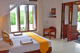 Die beiden Zimmer der Safira Beach Residence befinden sich im ersten Stock direkt am Strand. Vom Balkon aus haben Sie einen traumhaften Blick über den weitläufigen mit Palmen gesäumten Strand und den Indischen Ozean. Die Zimmer sind liebevoll eingerichtet und haben ein eigenes Bad und WC. Ein Deckenventilator sorgt für eine angenehme Raumtemperatur.