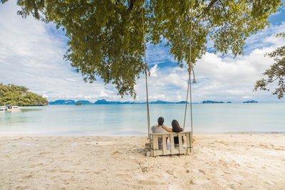 Grüne Palmen, weißer Sand, türkisblaues Meer – willkommen in auf der kleinen Insel Koh Yao Noi! Hier genießen Sie Yoga am Strand, gesunde Köstlichkeiten und erholsame Massagen in unberührter Natur.