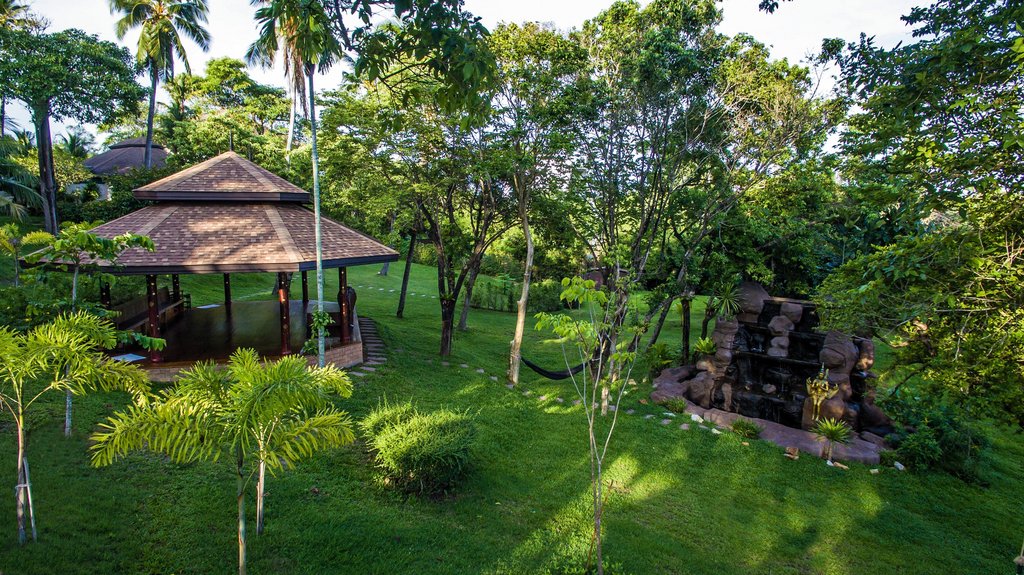 Die 50 komfortablen Villen sind harmonisch in tropische Gärten integriert und bieten durch ihre erhöhte Lage natürliche Privatsphäre. Jede Villa verfügt über eine private Terrasse mit Hängematte und Outdoor-Dusche. Die Superior und Deluxe Jacuzzi-Villen bieten zusätzlich private Außen-Whirlpools. Die bewusst abgeschiedene Lage unterstützt sowohl die intensive Yoga-Praxis als auch die Ruhe für Ayurveda-Behandlungen. Der nahe Nai Harn Beach ist mit kostenfreiem Shuttle erreichbar.