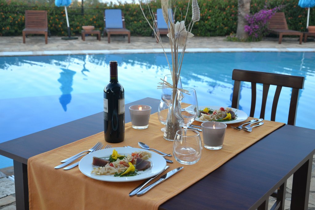 Morgens erwartet Sie ein reichhaltiges Frühstücksbuffet mit italienischen Café-Spezialitäten und Blick über das Meer. Abends werden Ihnen vier Gänge serviert – nach Rezepten, die das Küchenteam von Generation zu Generation weitergereicht hat. Frischer Fisch aus der Region, selbst angebaute Kräuter aus dem hoteleigenen Garten, sardisches Pane Carasau, Artischockenherzen: Die Küche verbindet Tradition mit modernen Komponenten. Auf Wunsch bereitet das Team alle Speisen vegetarisch für Sie zu.
