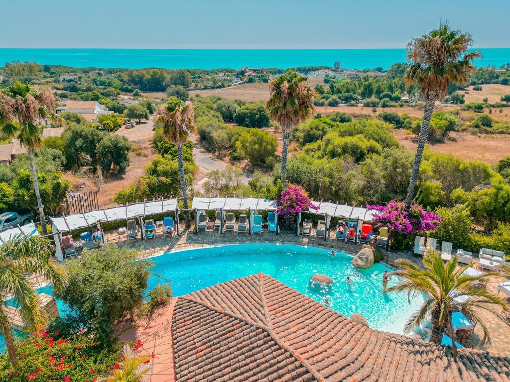 Das Hotel liegt oberhalb der Badebucht von Torre di Bari, in zehn Gehminuten erreichen Sie den weitläufigen Strand mit klarem Wasser. Die Zimmer verteilen sich auf mehrere Gebäude: Superior-Zimmer im Haupthaus (teilweise mit Meerblick), Galanias-Zimmer in Nebengebäuden im Garten, Pool- und Deluxe-Zimmer am unteren Poolbereich.