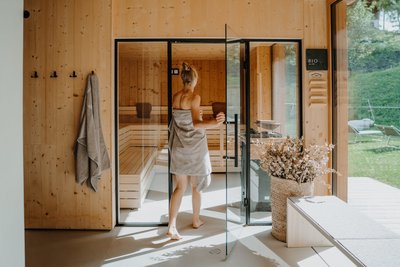 Das Saunahaus aus heimischem Holz fügt sich harmonisch in den Garten ein, während der adults-only Saunabereich am Seerosenteich pure Entspannung verspricht. Bio-Kräutersauna, Dampfbad und finnische Fichtensauna verwöhnen Sie mit den Düften von Rosmarin und Zirbel. Eine Tee-Lounge und Panorama-Ruheräume mit kuscheligen Relax-Kojen runden den Wellness-Bereich ab. Im beheizten Indoor-Naturpool schwimmen Sie mit Blick auf tanzende Libellen. Der Outdoor-Kneippbereich und Barfußpfad verbinden Sie direkt mit der Natur. Massagen und Naturkosmetik-Anwendungen ergänzen das Spa-Erlebnis.