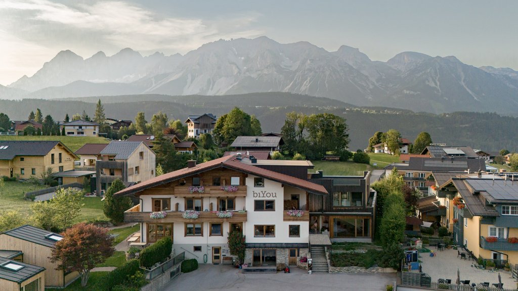 Das ehemalige Bio-Hotel Bergkristall erstrahlt nun als Ecoquartier biYou in neuem Glanz. Das Haus liegt in der Steiermark in Schladming-Rohrmoos und legt besonderen Wert auf heimische Ressourcen von regionalen Produzenten und aus zertifiziert biologischem Anbau, was sich im gesamten Konzept des Hauses widerspiegelt. Es gibt beispielsweise ein Hochbeet, in dem das Team Gemüse und Kräuter anbaut.