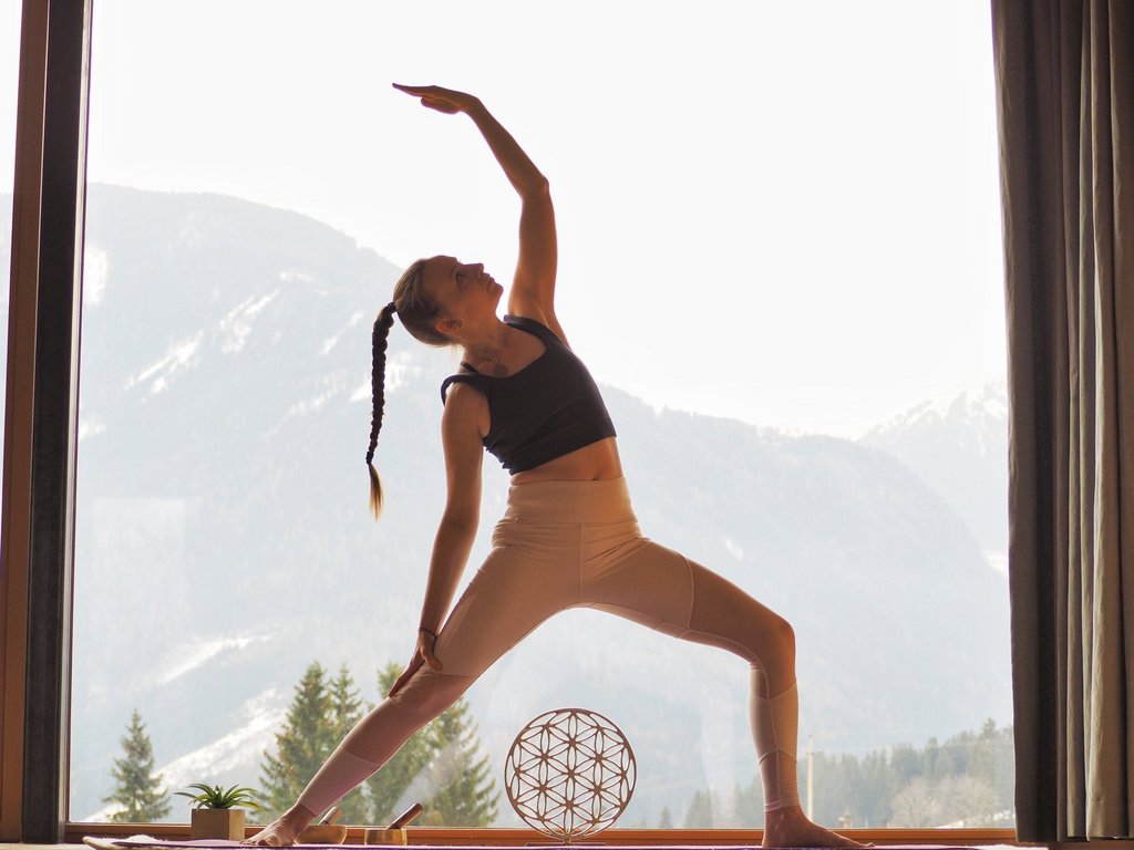 Ihre Gastgeberin Karin Seebacher und ihr Yoga-Team unterrichten die Yoga-Einheiten sehr achtsam. Sie üben entweder in einem modernen und großzügigen Yoga-Raum, oder auf der Yoga-Plattform mit einem Rundumblick auf die Sie umgebende Bergwelt.