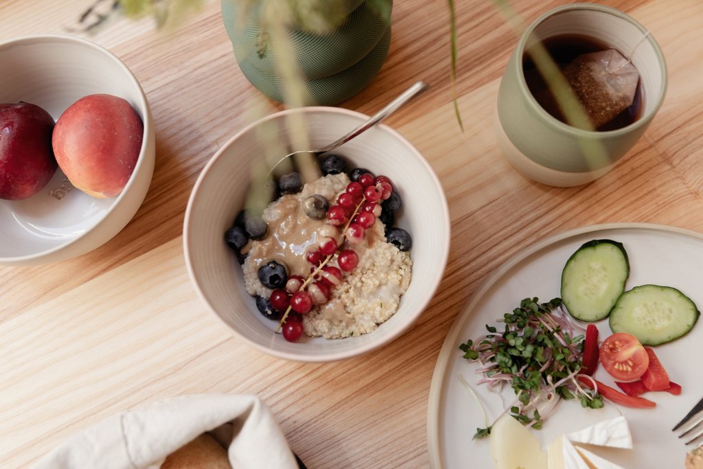Während Ihrer Yoga-Woche steht Ihnen täglich ein reichhaltiges und leckeres Bio-Frühstücksbuffet zur Verfügung, um Ihnen einen vitalen Start in den Tag zu bescheren. Brot und Gebäck vom regionalen Bäcker, Käse, Wurst, selbstgemachte Marmeladen und Aufstriche sowie warmer Frühstücksbrei, Trockenfrüchte, Obstsalat und Nüsse erwarten Sie. In der veganen Ecke finden Sie zusätzlich vegane Spezialitäten, Kräutersäfte und Smoothies.