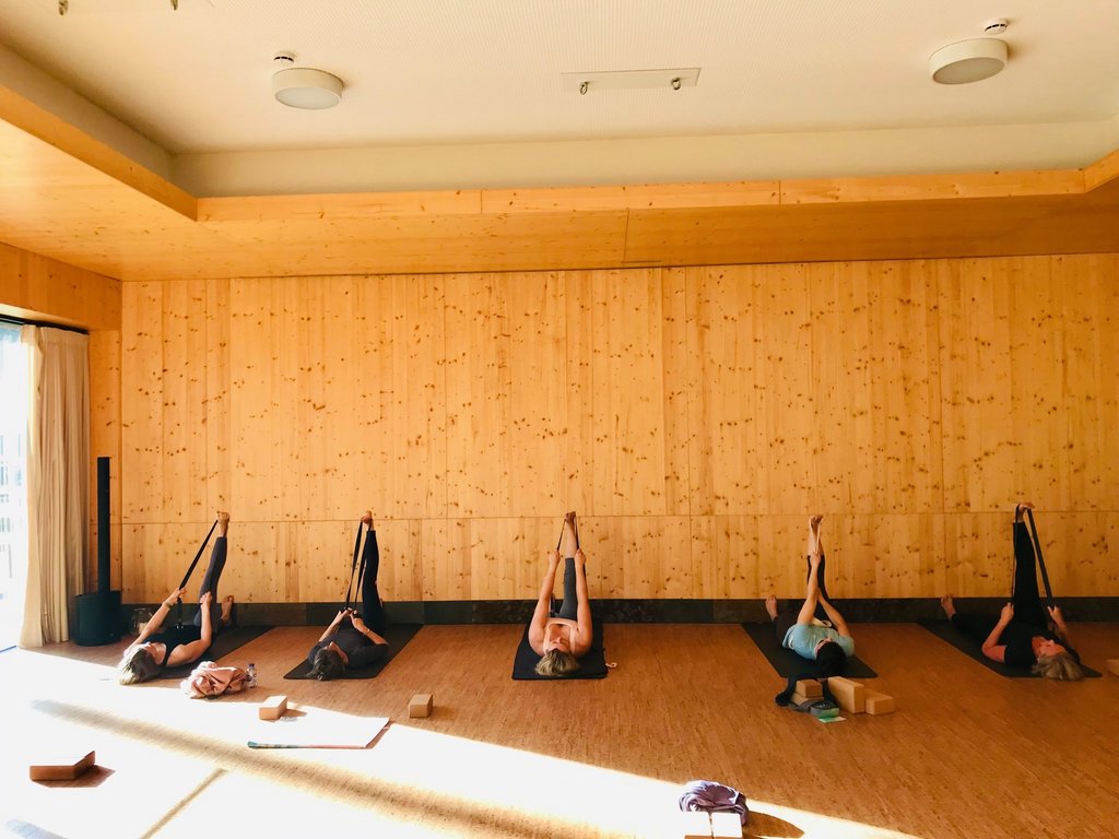 Am Nachmittag folgt ein 60–90-minütiges Pilatestraining, das den Körper aus der Mitte heraus stärkt und den Atem bewusst einbezieht. Anschließend klingt die Einheit mit leichtem Yoga oder Yin-Yoga ruhig aus. Alle Übungen sind fließend aufgebaut, richten sich nach der Befindlichkeit der Teilnehmenden und sind für alle Level geeignet.
