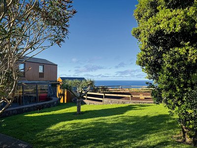 Dieses Tiny-Haus ist 18 qm groß und liegt etwas abseits zur Patio Ecolodge. Insgesamt gibt es davon drei Stück, diese teilen sich eine große Wiese mit der Möglichkeit abends zusammen zu sitzen mit Blick auf den Atlantik, die Caldeira von Faial, den Vulkan Pico und die Inseln Graciosa und São Jorge. Es verfügt über ein Queen-Size-Bett, einen Wohnbereich mit kleiner Kitchenette und ein eigenes Badezimmer. Föhn und Handtücher sind vorhanden. Das Tini House ist entweder buchbar für Paare (kleines Bett) oder für Alleinreisende.