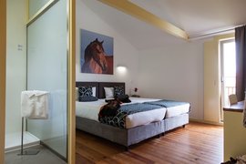 Die 22 qm großen Ecolodge Zimmer im Hauptgebäude bieten wahlweise zwei Twin-Betten oder ein Kingsize-Bett. Die Nichtraucherzimmer verfügen über eine Minibar, kostenloses WLAN, einen Schreibtisch und ein eigenes Bad mit Dusche, Föhn und Handtüchern. Die Zimmer sind mit stilvollen Naturmöbeln aus Zedernholz ausgestattet. Genießen Sie die Aussicht auf das Gelände mit Lusitano-Pferden, den Atlantik und die Nachbarinseln. Die Zimmer sind auch zur Alleinnutzung buchbar. (Beispielbilder)