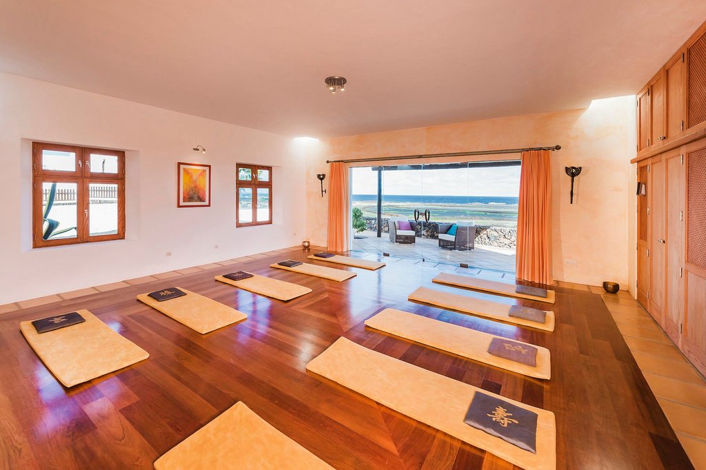 Die Yoga-Einheiten finden jeden Morgen 90 Minuten vor dem Frühstück im Seminarhaus „Namaste" statt – mit imposantem Weitblick auf die Lava-Landschaft und das Meer.