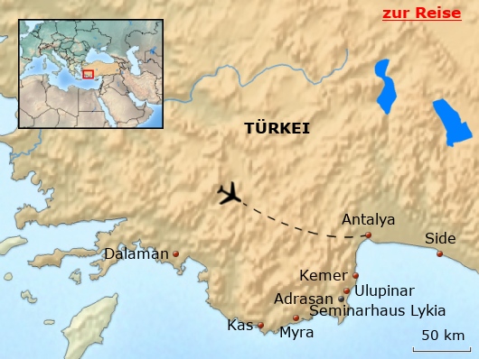 Die Anreise erfolgt über den Flughafen Antalya, der sich etwa 90 Kilometer östlich von Adrasan befindet. NEUE WEGE ist bei der Suche nach einem passenden Flug ab dem gewünschten Abflughafen behilflich. An den An- und Abreisetagen, sonntags, stehen fünf kostenlose Transfers zu festgesetzten Zeiten zur Verfügung. Die Fahrt vom Flughafen zur LYKIA lodge dauert etwa 90 Minuten.